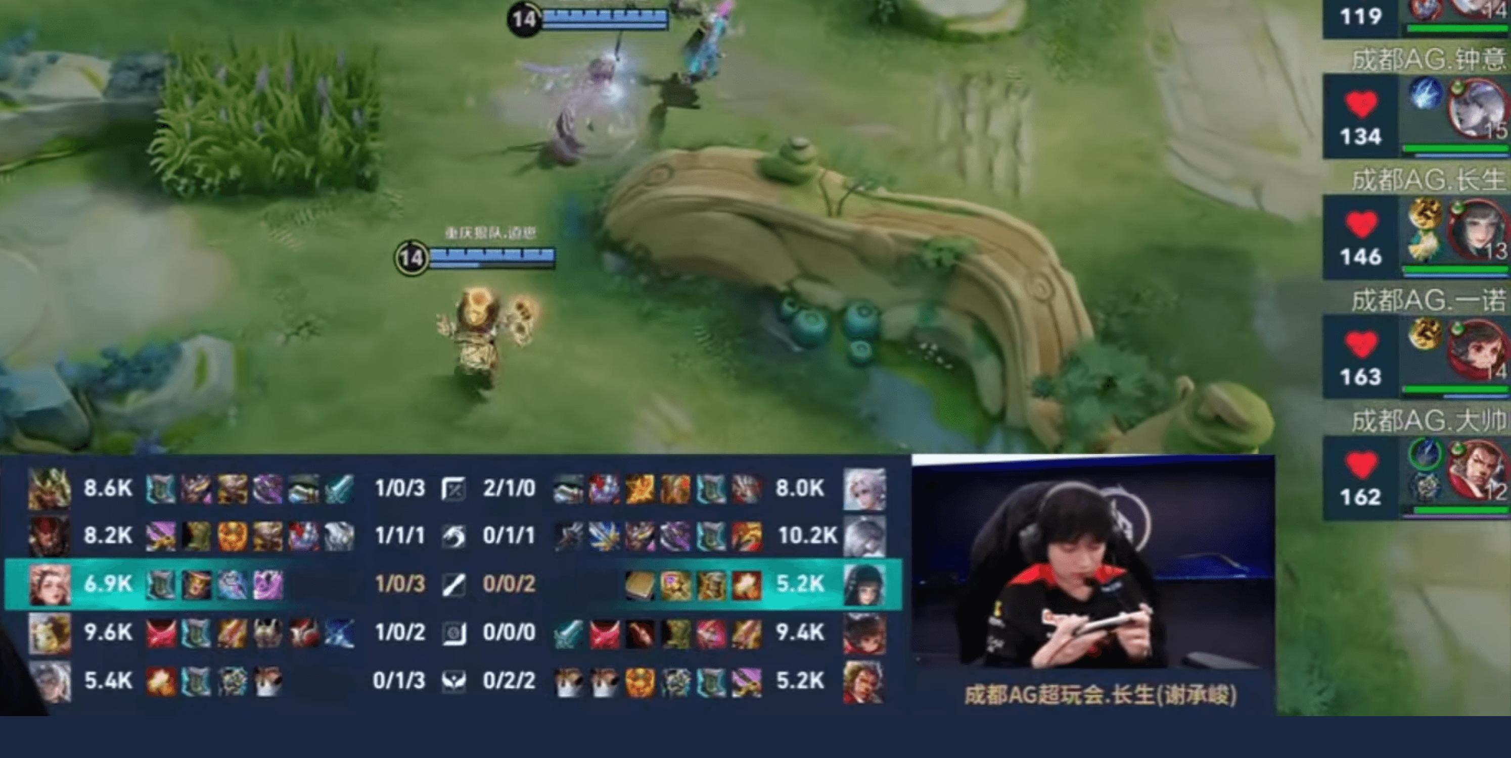 Xi Shi midlaner with roam items certainly intentionally got a penalty so that all minions were taken by Jing (see jungler gold diff). At the start of the game, Xi Shi immediately followed the jungle (Red>Minion Mid> Blue)